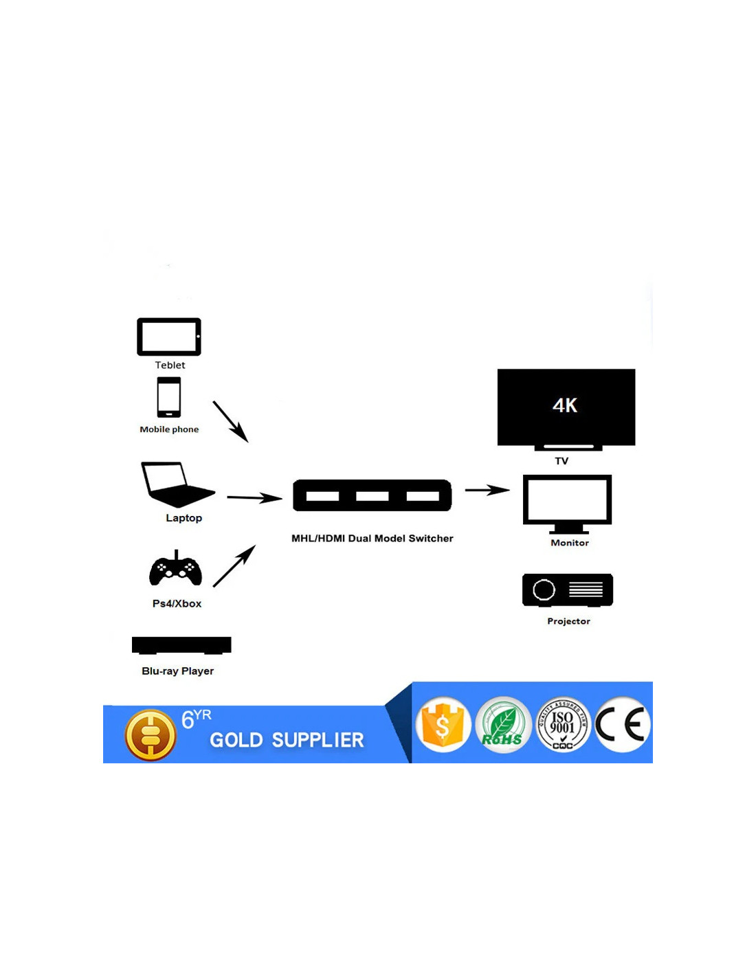 3 signaux HDMI 1.4 peuvent être librement commutés vers un écran HDMI 1.4.