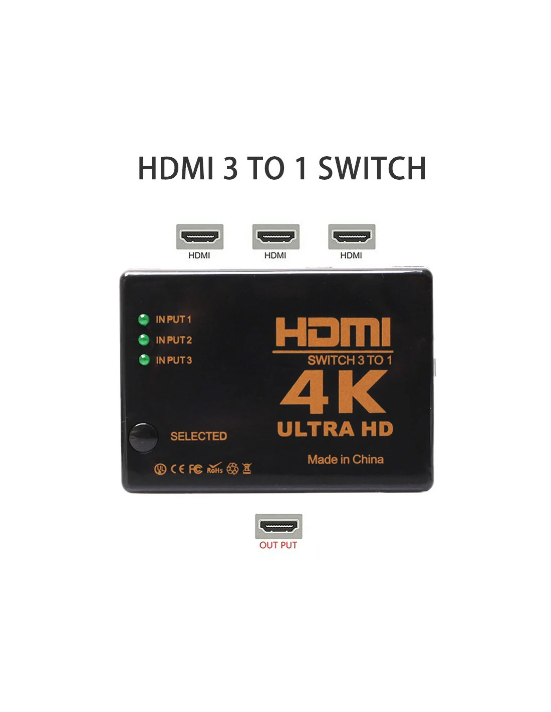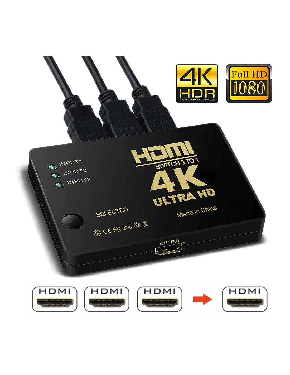 HDMI Switch 3 Ports 4K Ultra HD- Télécommande incluse