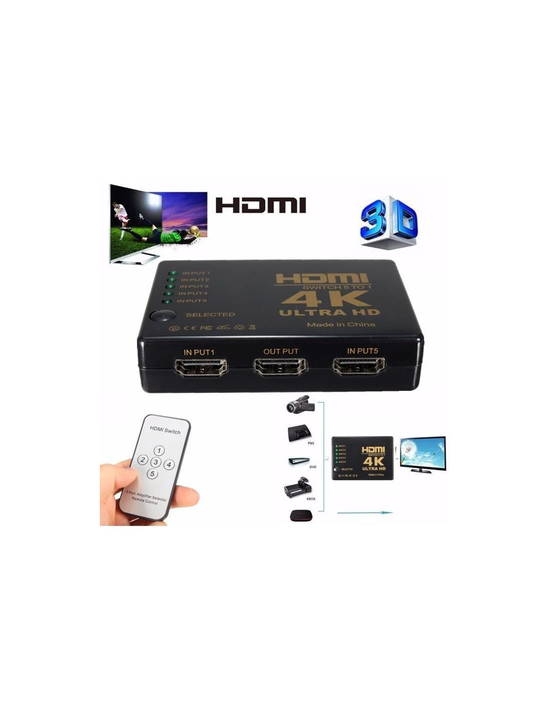 Switch HDMI 5 Ports 4K - Télécommande incluse