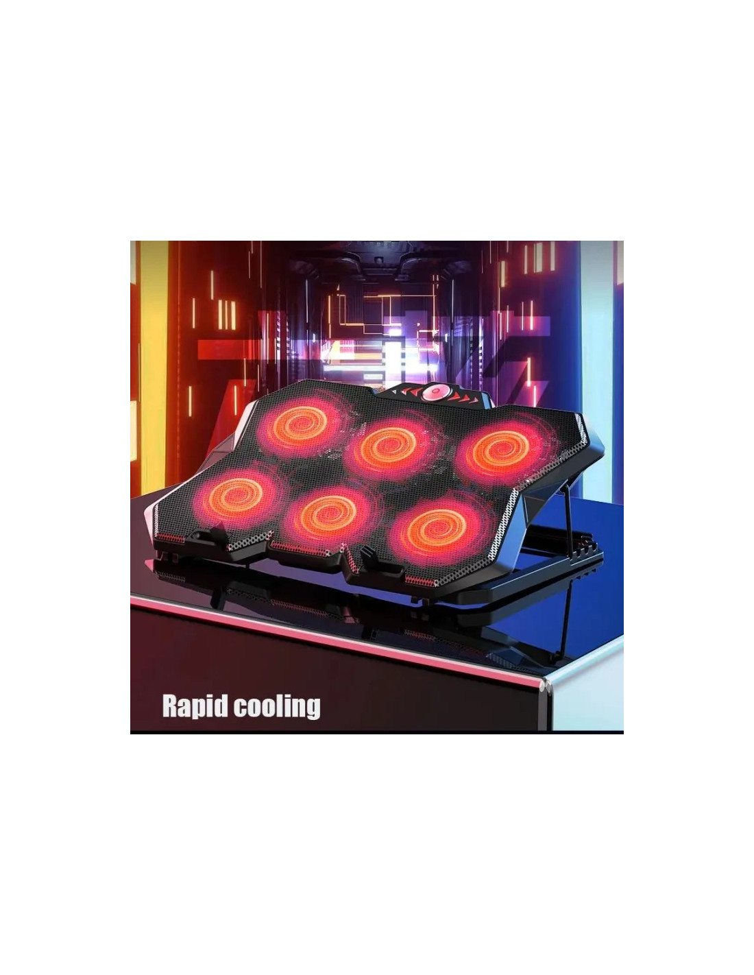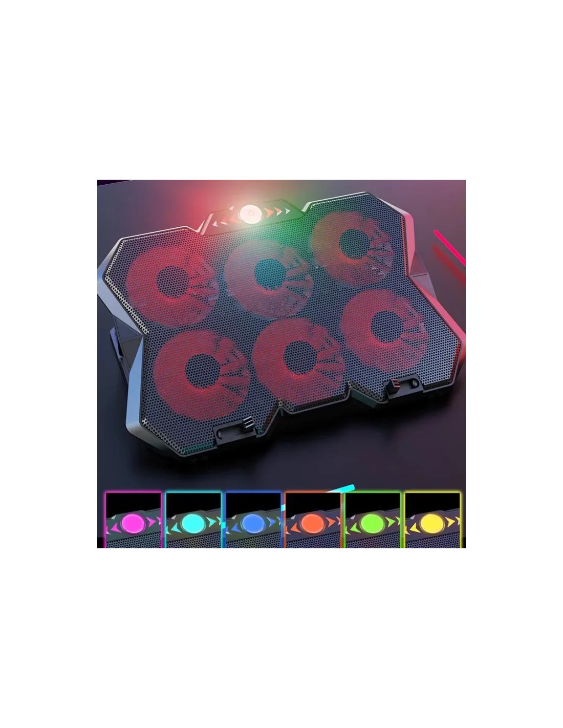 Support de refroidissement pour ordinateur portable à six ventilateurs avec écran LED et deux ports USB, idéal pour le gaming