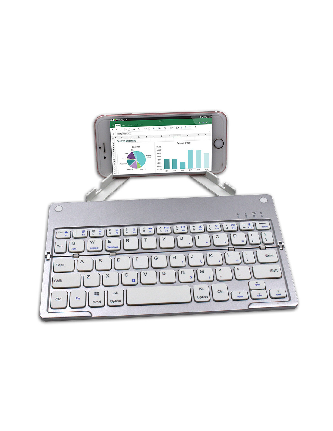Le Mini Clavier Harmonica est un clavier sans fil pliable, conçu pour offrir une expérience de frappe confortable, silencieuse et pratique, que vous soyez en déplacement, au bureau ou à la maison. Sa conception fine et légère le rend facile à transporter, et sa connectivité Bluetooth 5.0 assure une compatibilité étendue avec les appareils Android, iOS, Windows et Mac OS.