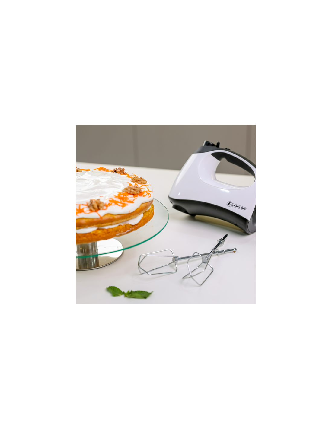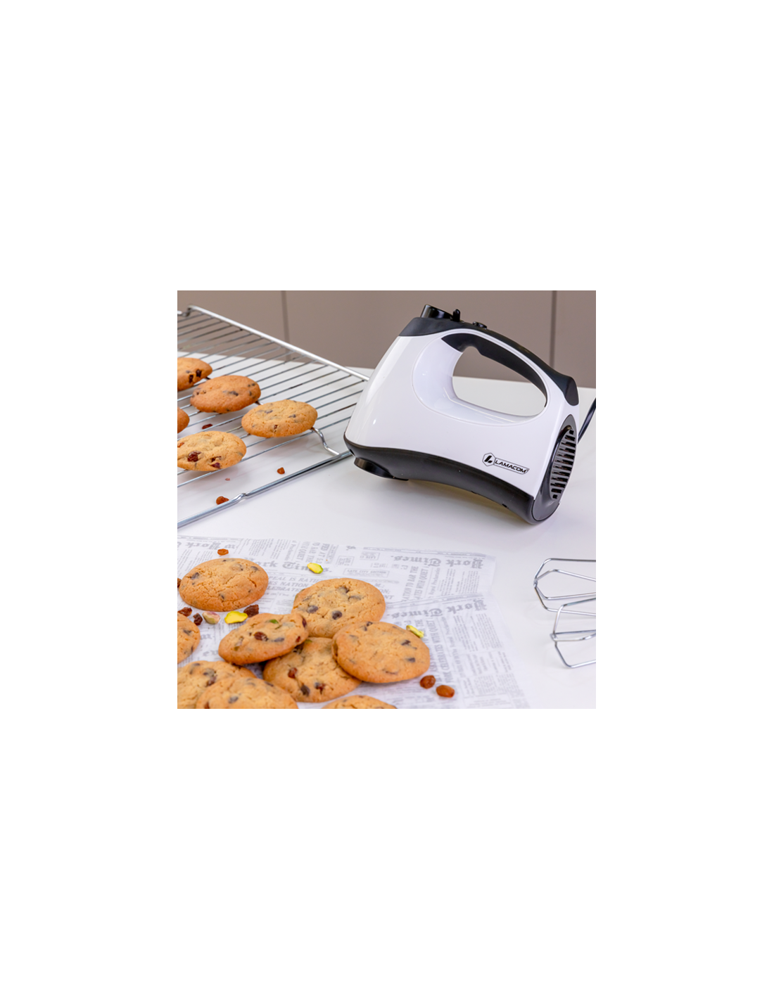 Accessoires adaptables : Avec 2 fouets et 2 pétrisseurs tout en inox ;