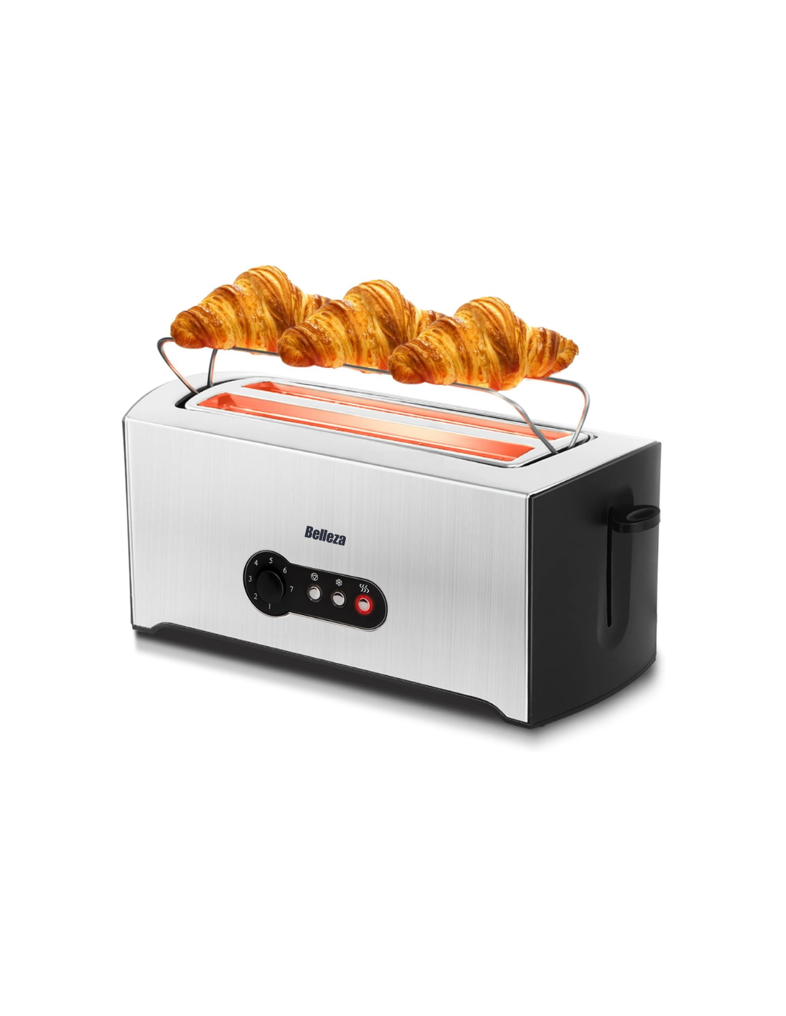 En résumé, ce grille-pain longue fente Belleza est le choix parfait si vous cherchez un appareil puissant, polyvalent et simple d’utilisation. Il convient à tous types de pain, bagels et brioches, pour un petit-déjeuner express ou une pause gourmande.