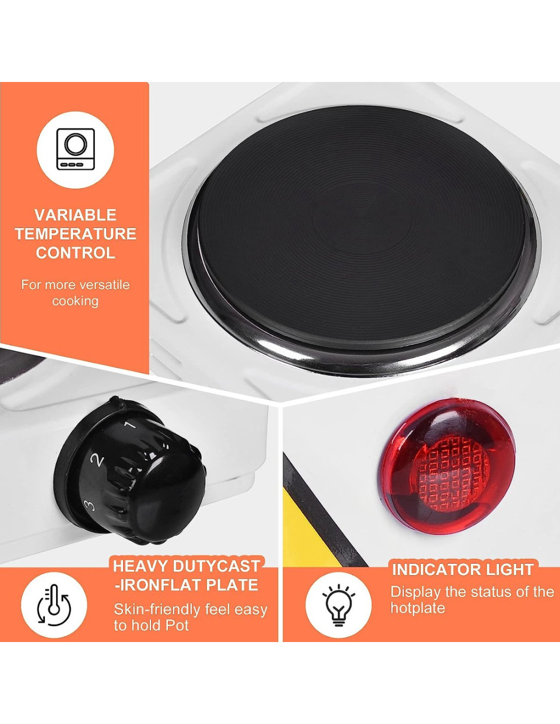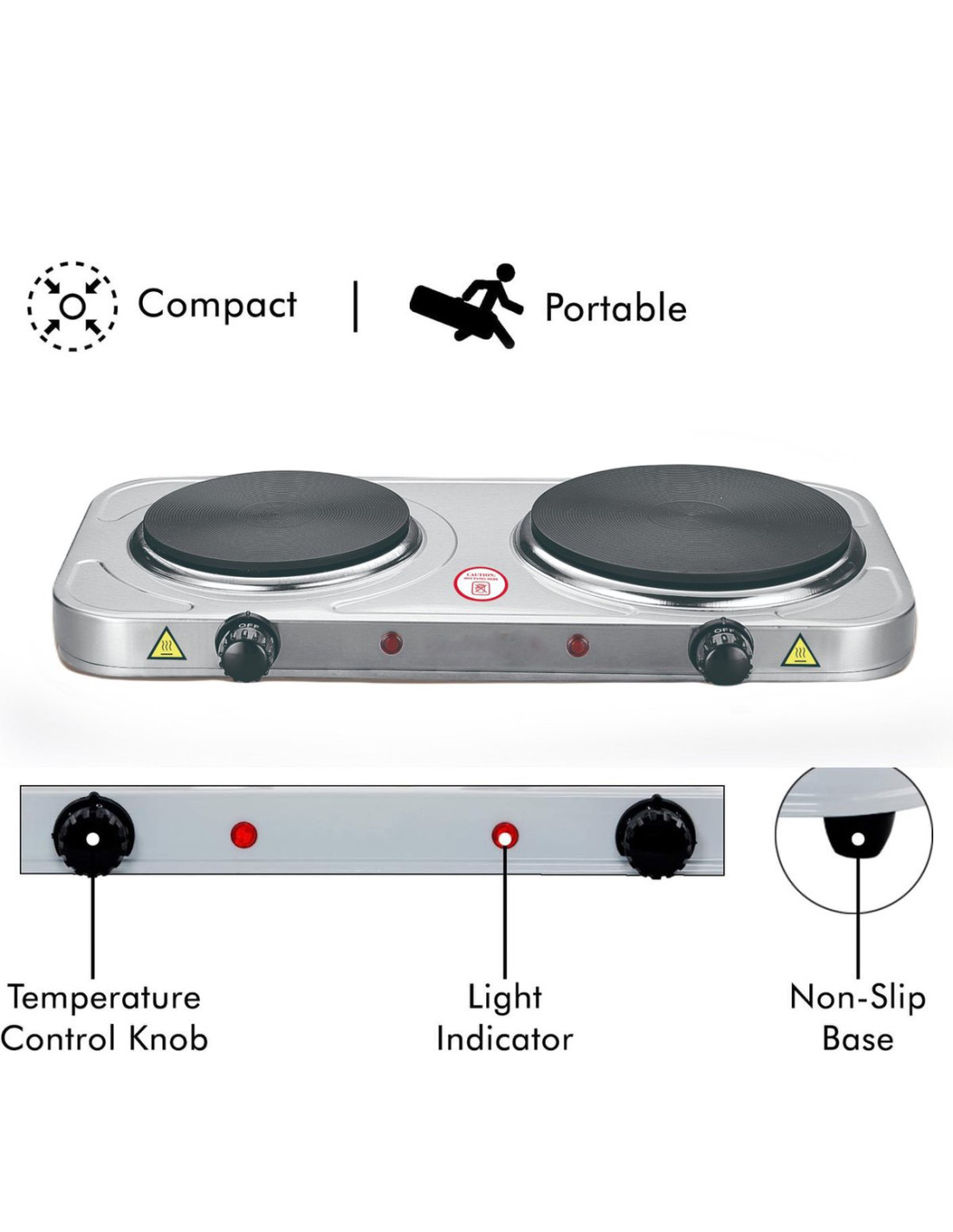 Elle est parfaite pour les moments où vous avez besoin d'un autre appareil de réchauffement ou pour les gens n'ayant pas de cuisine.Notre produit est idéal pour maintenir les repas au chaud. En utilisant notre produit, vous pouvez faire la cuisine dans votre dortoir ou chauffer vos plats quand vous êtes sur votre patio.Notre plaque de cuisson est indispensable pour la cuisine grâce à son réglage de différentes températures, son brûleur résistant et sa belle finition blanche.Cette plaque de cuisson est facile à nettoyer et à entretenir. Couleur: inoxVoltage: 220V - 230V 2500Watt Diamètre de brûleur: 19cm + 15 cmArticles de cuisine