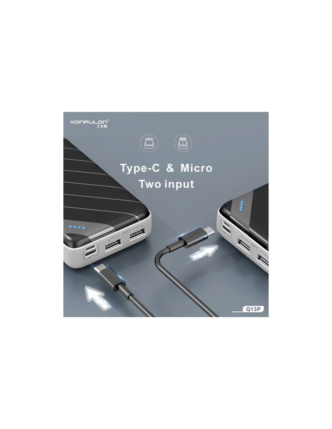 Le Konfulon Q13P Power Bank est compact et léger, ce qui le rend facile à transporter. Il est également équipé d'un indicateur LED qui vous permet de suivre la quantité de charge restante.