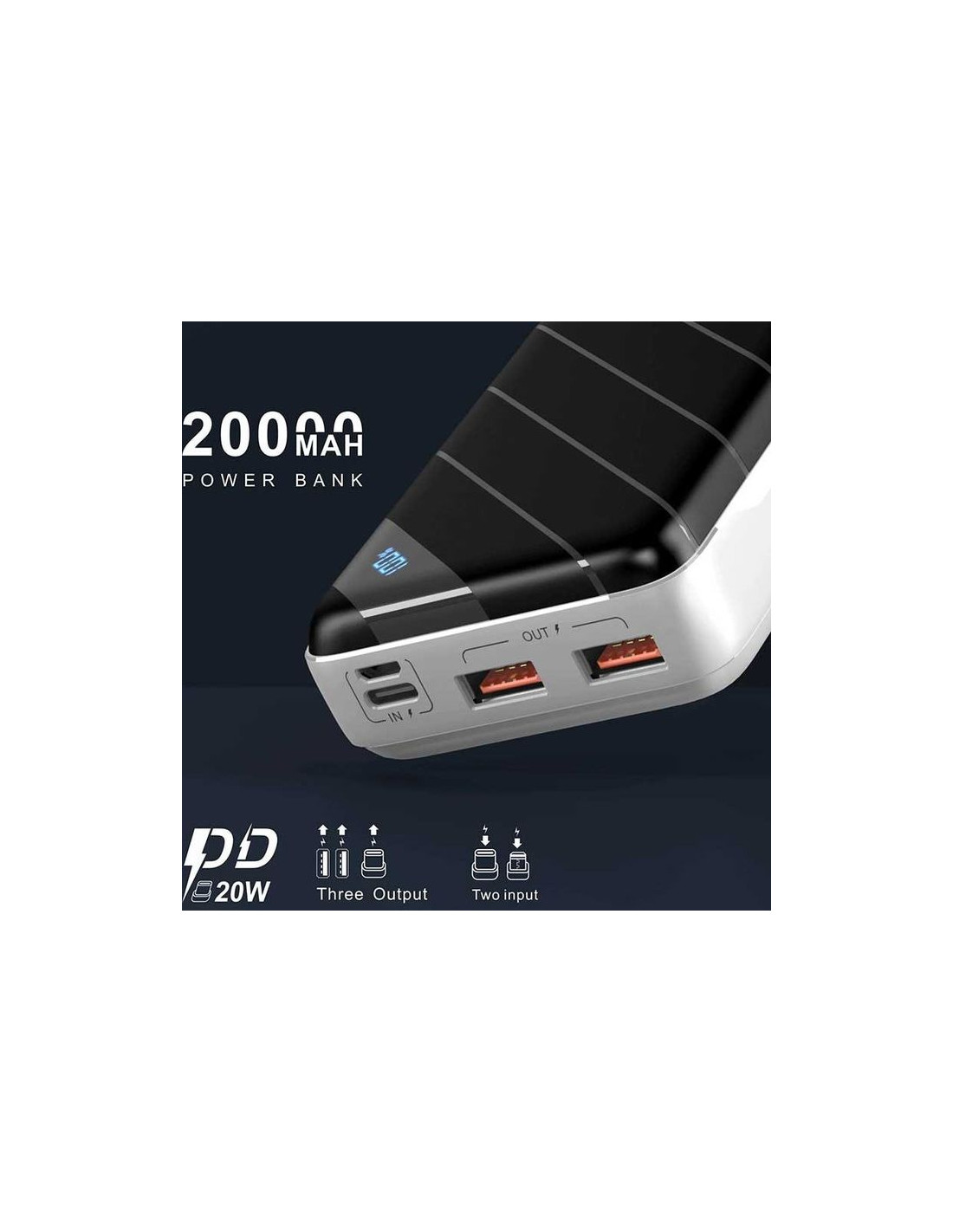 Il dispose d'une capacité de 20000 mAh, ce qui vous permet de recharger votre smartphone, votre tablette ou votre appareil photo plusieurs fois. Il est équipé de quatre ports USB, dont un port USB-C, ce qui vous permet de recharger vos appareils rapidement et efficacement.