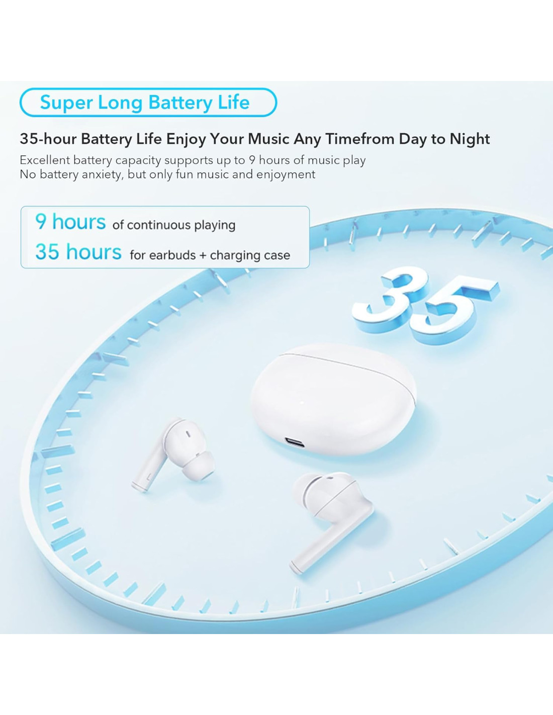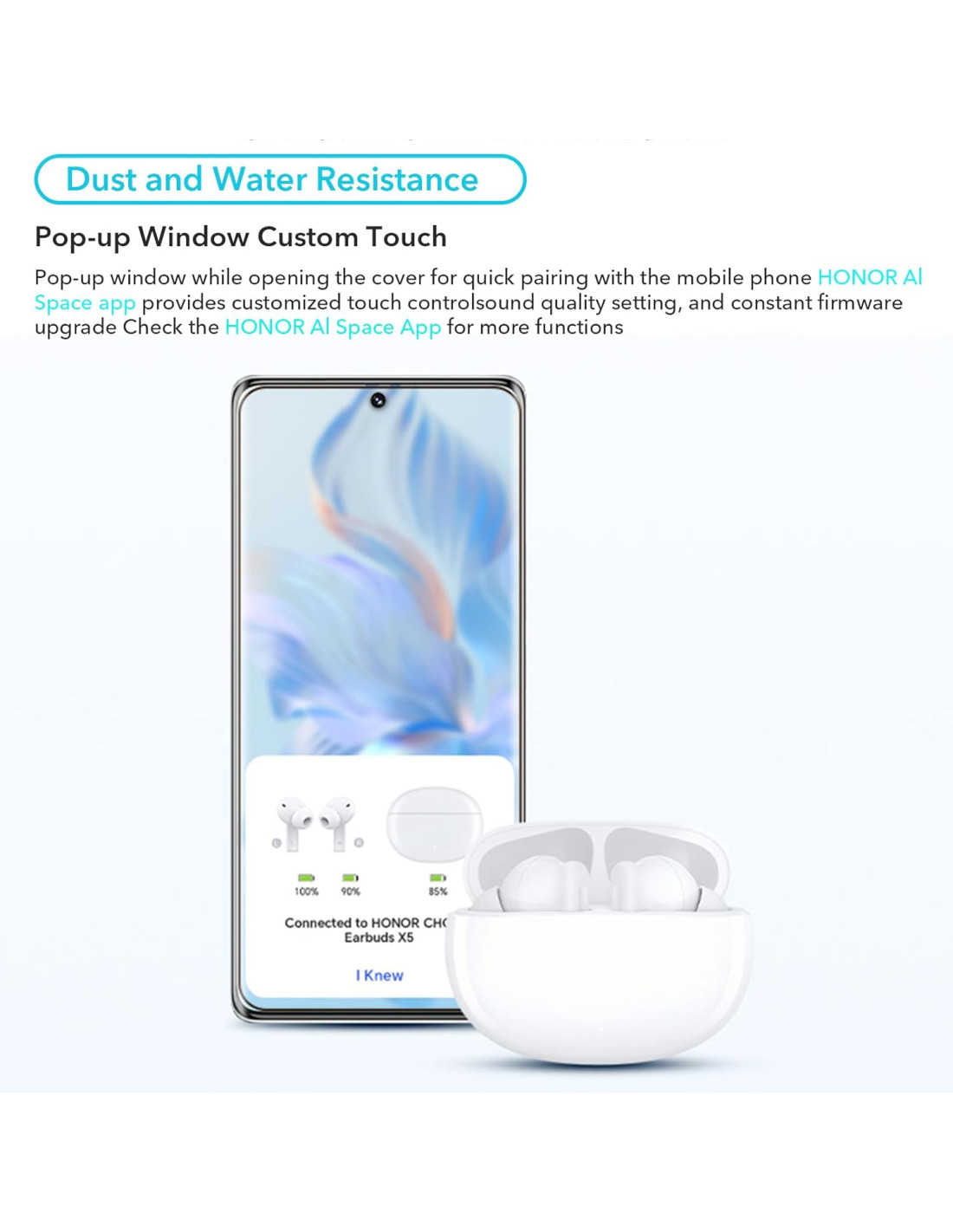 【35 heures d'autonomie】HONOR CHOICE Earbuds X5 peut lire une seule chanson pendant 9 heures, et cette durée peut être prolongée jusqu'à 35 heures avec un étui de chargement. Profitez d'une musique magnifique du matin au soir.